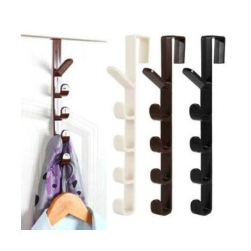 Multifunctional 5-Hook Wall & Door Hanger – Plastic Hanging Hook Holder (1pc)