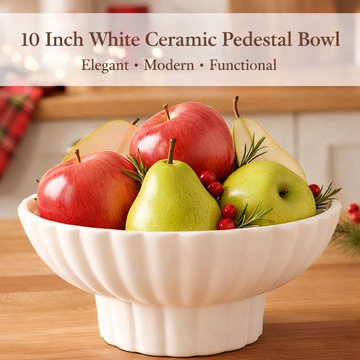 10 Inch White Ceramic Decorative Pedestal Bowl