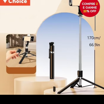 Pau de Selfie Tripé Retrátil Controle Bluetooth