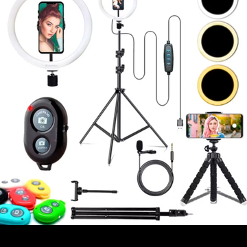 Kit Youtuber com Tripé 2.10m Iluminador Ring Light