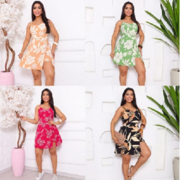 Macaquinho Short Saia Feminina | Duna estampado e liso Casual e Elegante Decote em V Alça Fina