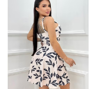 Vestido Feminino Estampado Rodado Alcinha com Bojo Amarração Frente Soltinho Dia Dia
