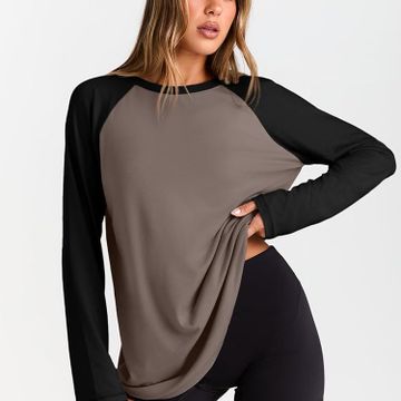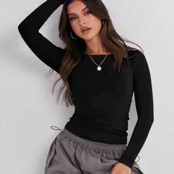 Women Long Sleeve Shirts Rib Knit Slim Fit Top