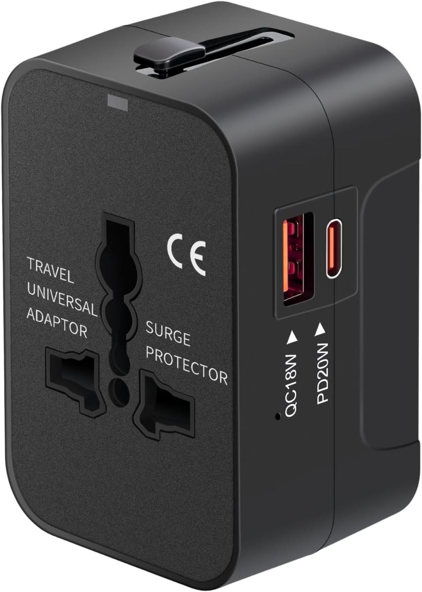 View On Amazon Universal Travel Adapter with USB-C & USB-A – Worldwide All-in-One Fast Charging GaN PD 3.0 Power Adapter