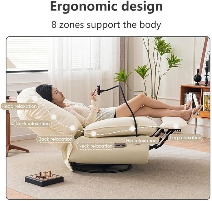 Upgrade your comfort with this modern Glider Recliner Chair, designed to deliver smooth rocking, full swivel movement, and relaxing reclining functionality in one stylish seat. Perfect for the living room, office, or bedroom, this single recliner blends convenience with everyday luxury.