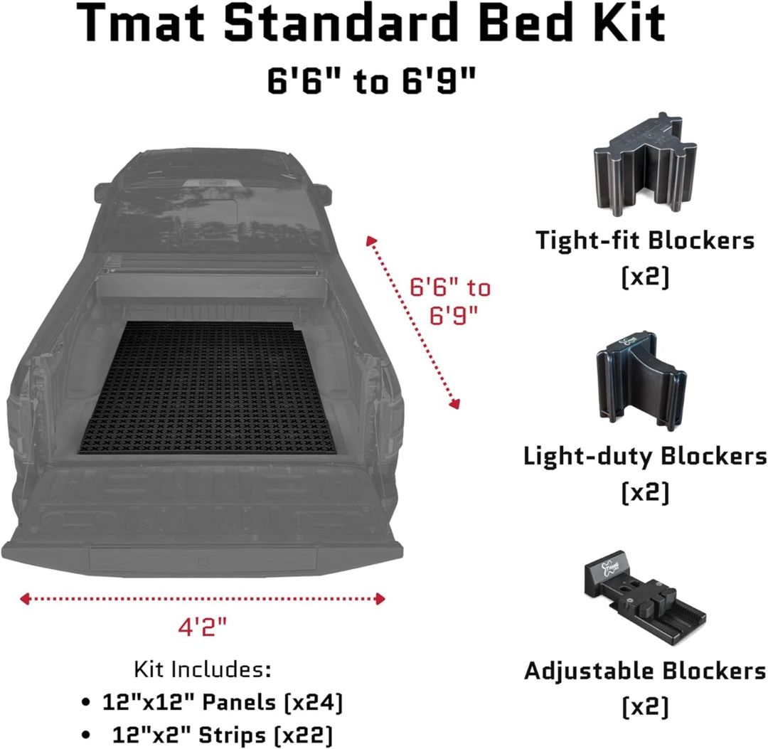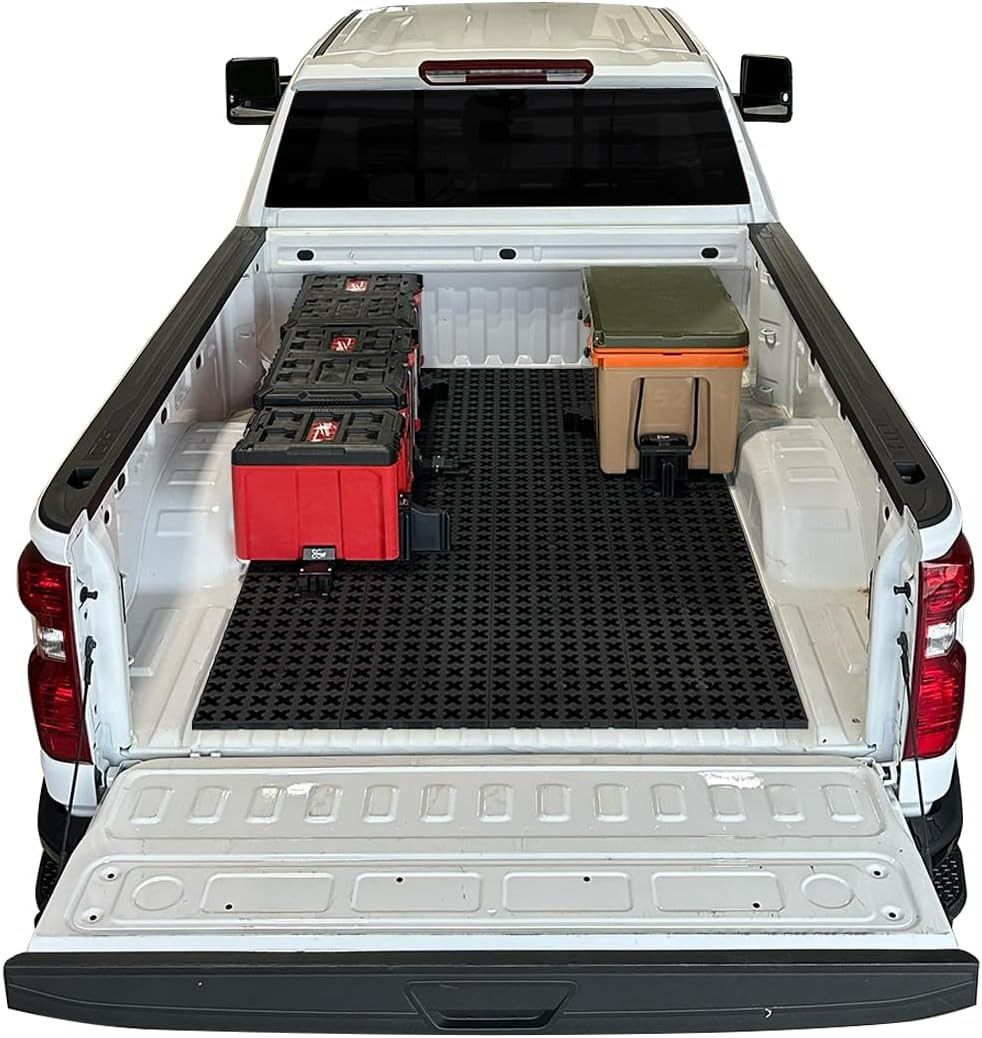 The Tmat Truck Bed Organizer Storage System Slide Out Mat is a heavy-duty cargo management solution designed to keep your truck bed organized and accessible. This universal-fit cargo mat fits most standard truck beds measuring 6′6″ to 6′9″ between the wheel wells — including popular full-size models from Ford, Ram, Chevy, GMC, Toyota, and more.