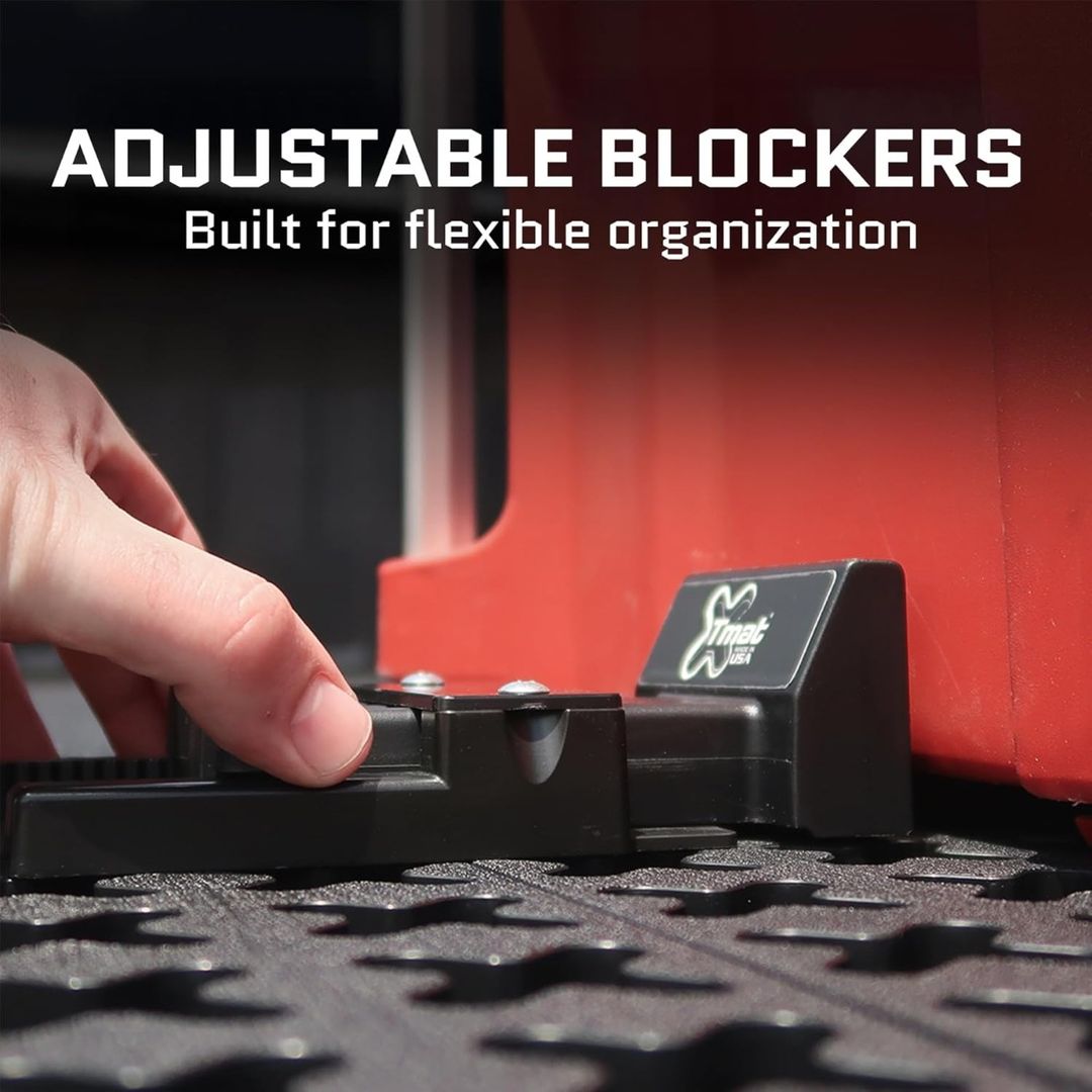Constructed from interlocking panels and strips, this customizable system lets you create secure compartments for tools, gear, and equipment. The modular blockers plug into the mat anywhere you need them, preventing items from shifting during transport.