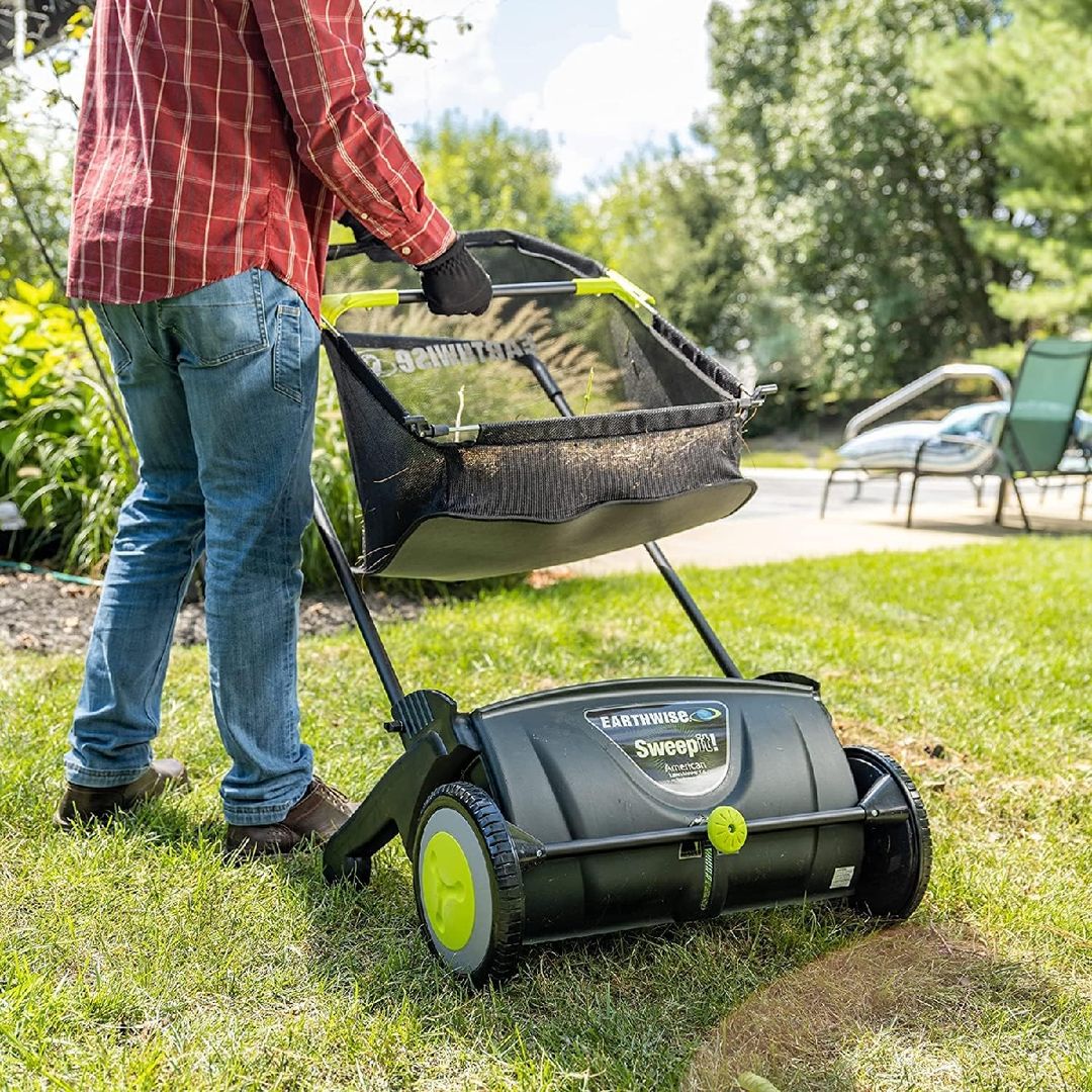 Amazon Earthwise LSW70021 21-Inch Width Leaf & Grass Push Lawn Sweeper, Black
