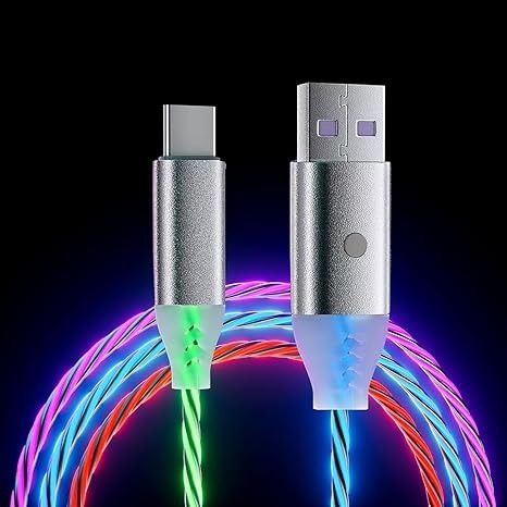 View On Amazon 3.3FT / 1M USB Type-C LED Light Up Charging Cable – RGB Flowing Light, 3A Fast Charging with On/Off Switch