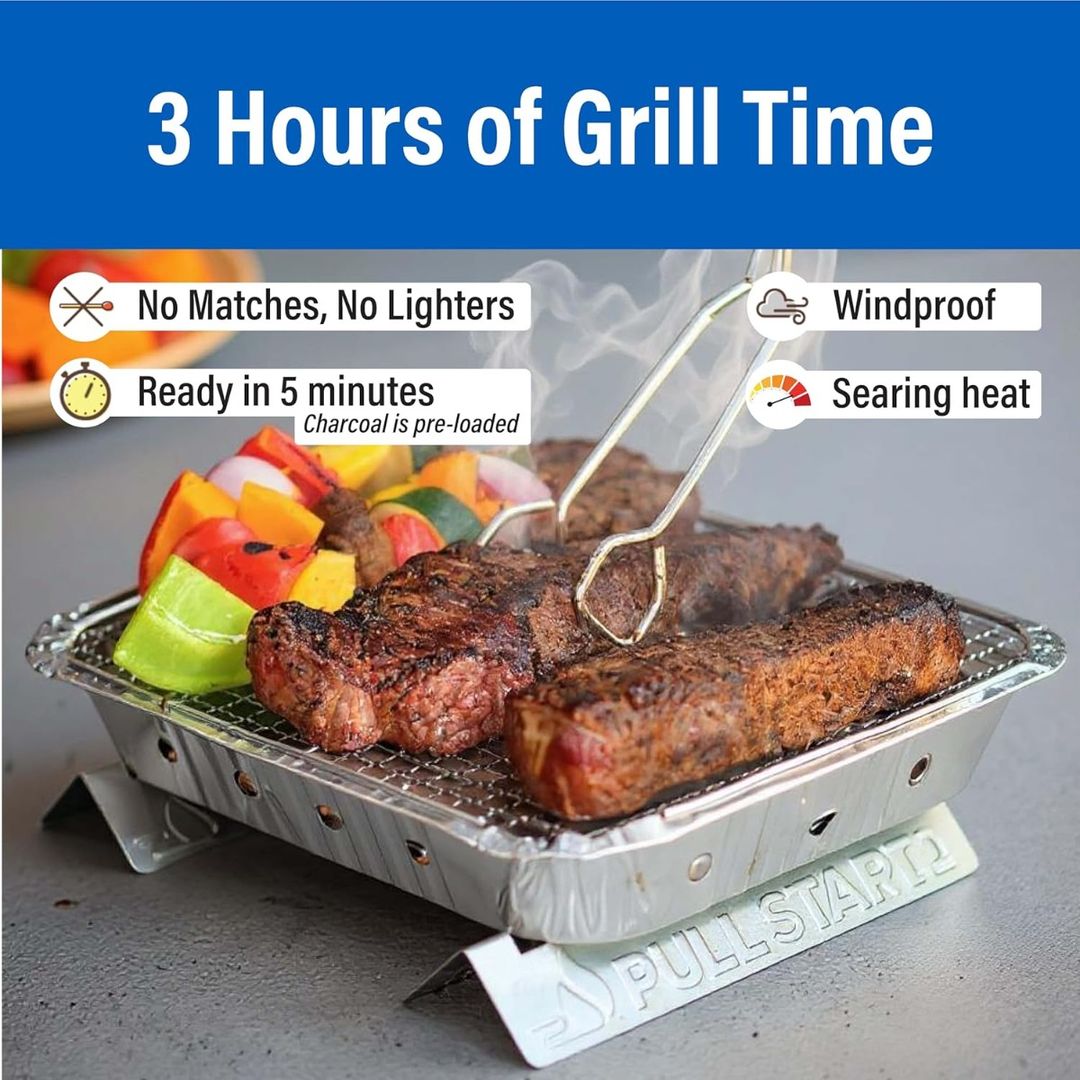 View On Amazon Pull Start Fire Grill – Single-Use Portable Disposable Charcoal BBQ with Matchless Ignition, Ready in 5 Minutes, 3-Hour Burn for Camping & Outdoor Cooking