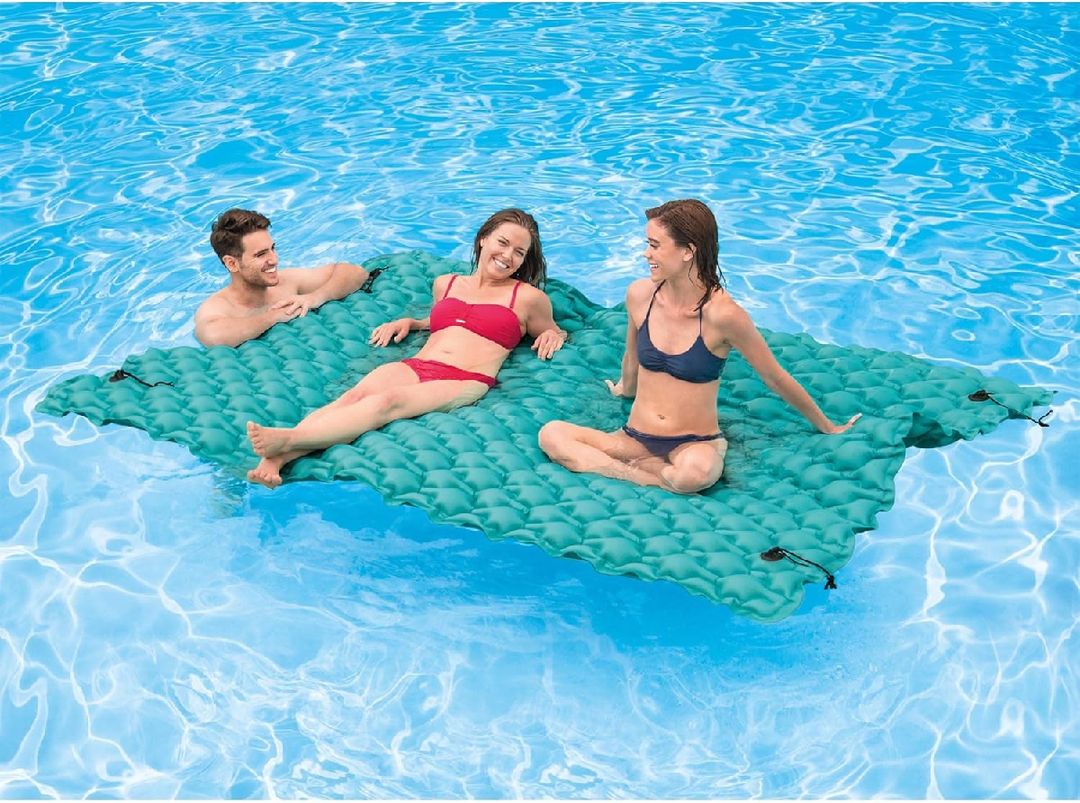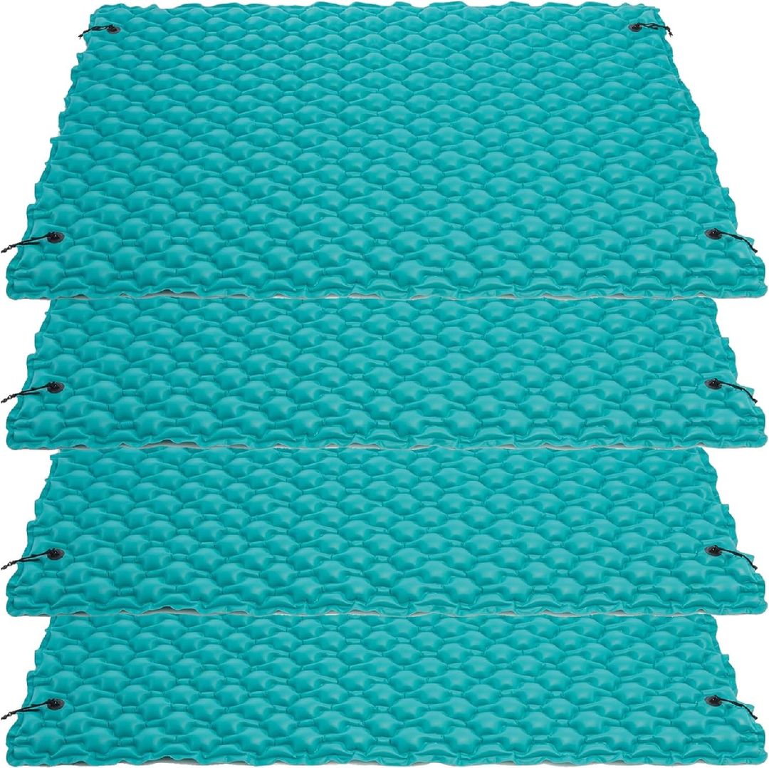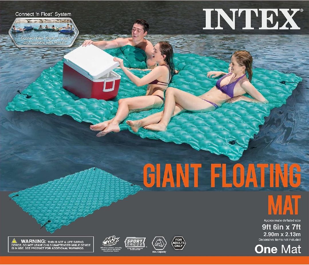 Enjoy ultimate relaxation on water with the Intex Giant Inflatable Floating Water Mat (4 Pack). This durable, oversized floating platform is perfect for pools, lakes, and calm waters, offering plenty of space to lounge, tan, or play. Featuring four Connect ’n Float connectors, you can easily attach multiple mats together to create a larger floating oasis. Made from tough, puncture-resistant material, this teal water mat is ideal for family fun, water parties, and days spent soaking up the sun.